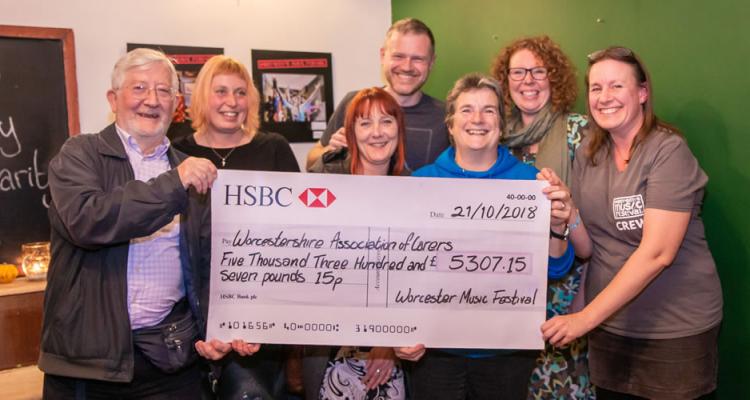 Worcester Music Festival presented a cheque for £5307.15 to their chosen charity, Worcestershire Association of Carers.